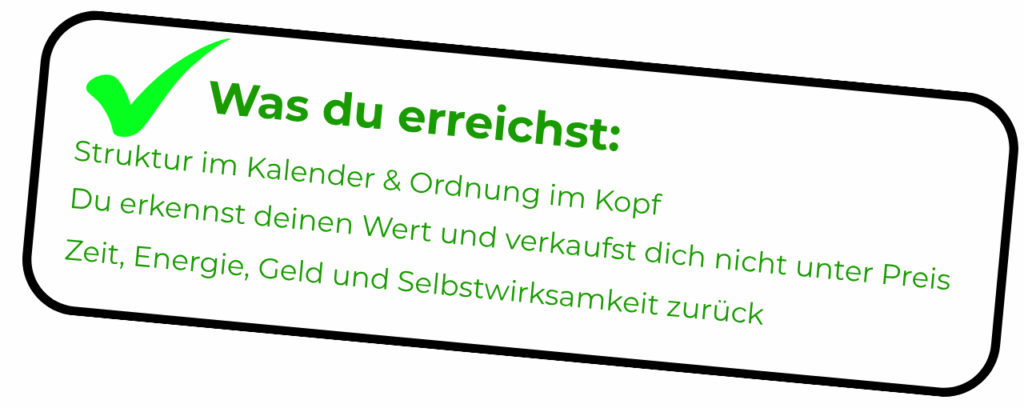Profitiere von einer erprobten Strategie, die dir Zeit spart und dein Business wieder klar ausrichtet.